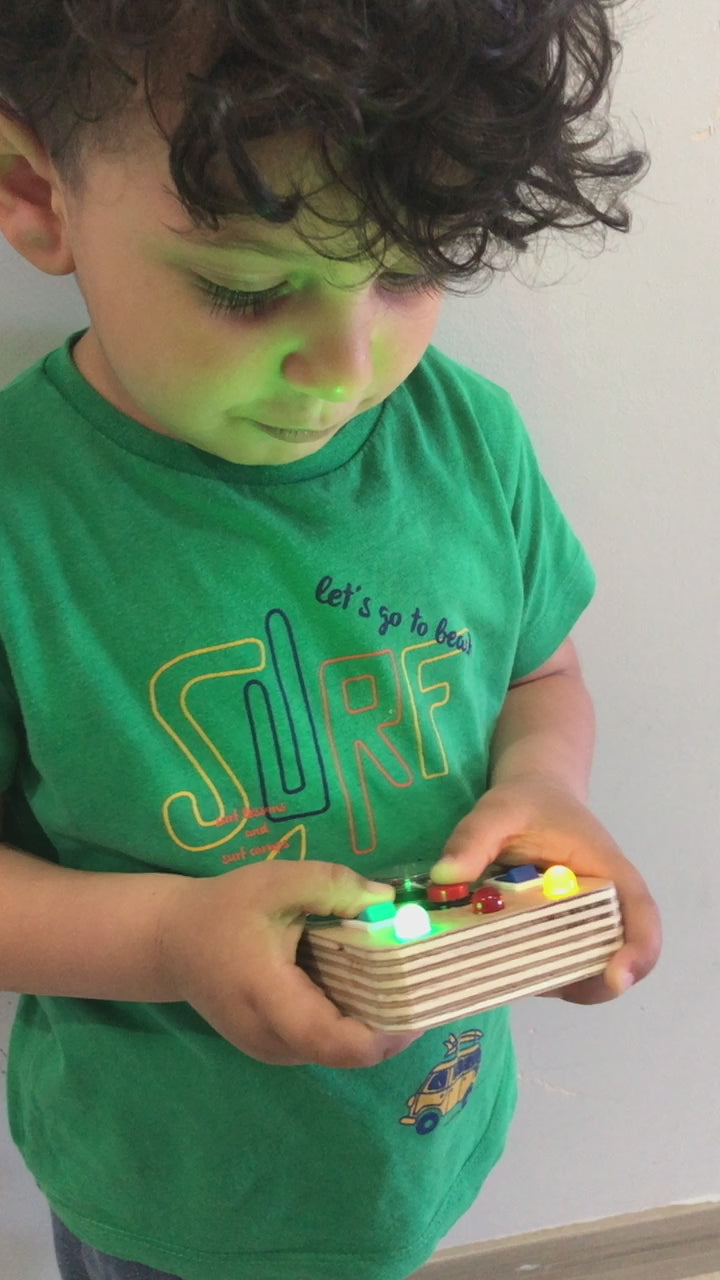 Handmade busyboard for toddlers. Travel montessori toy for light switch button obsessed toddlers.